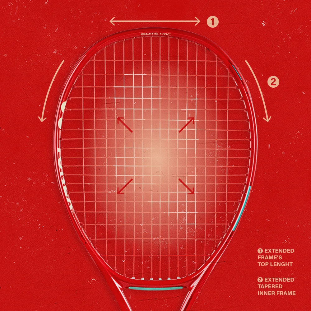 Im Vergleich zu einem herkömmlichen runden Rahmen verfügt der quadratische ISOMETRIC-Schläger über einen um 7 % größeren Sweet Spot*. Dadurch ist der Schläger fehlerverzeihender und verbessert die Spielbarkeit.